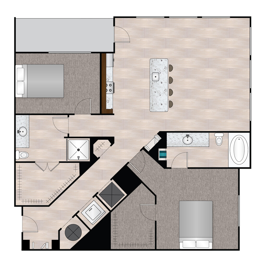 2 Dormitorios, 2 Baños, 1277 pies²Disponible AhoraEl más grandeEsta opción tiene las unidades más grandes para este modeloGalería del Modelo