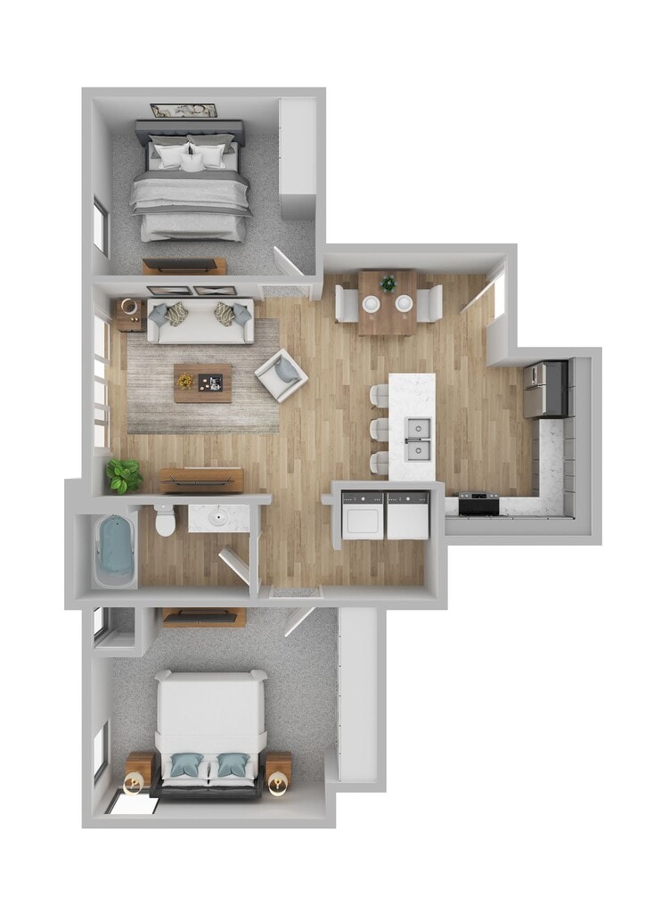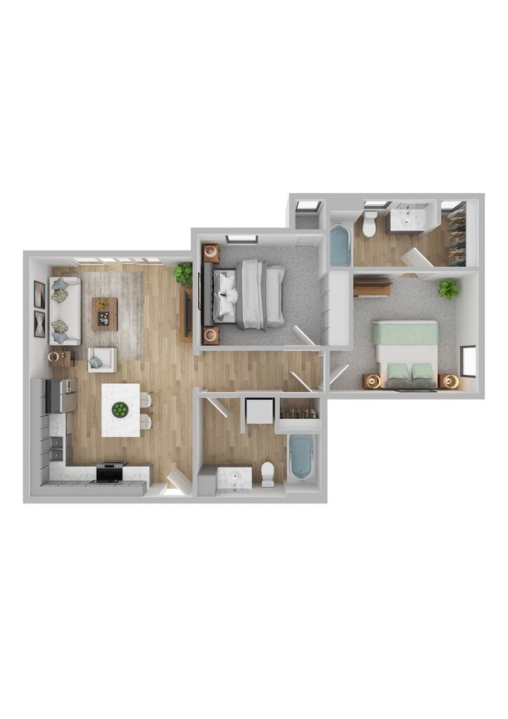 2 Dormitorios, 2 Baños, 850 pies²Disponible AhoraGalería del Modelo