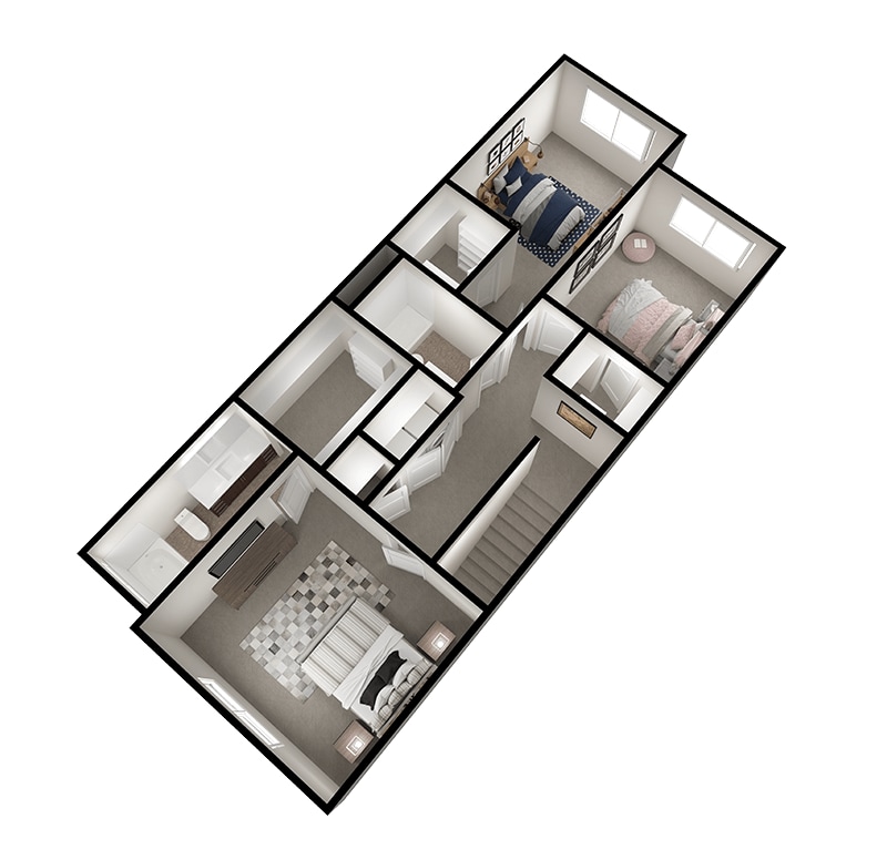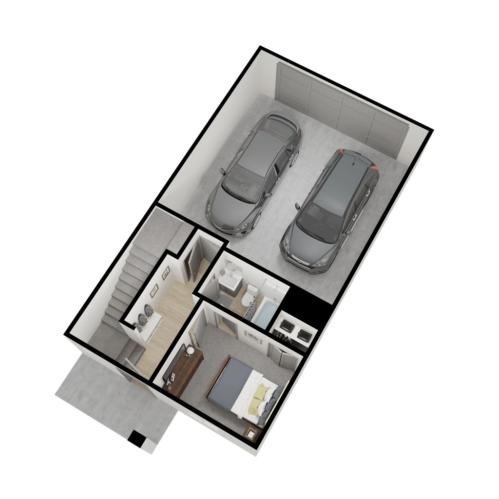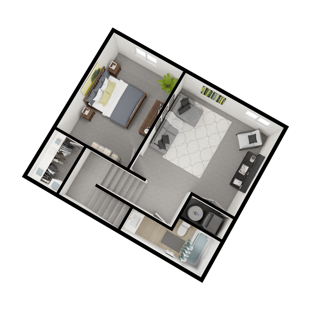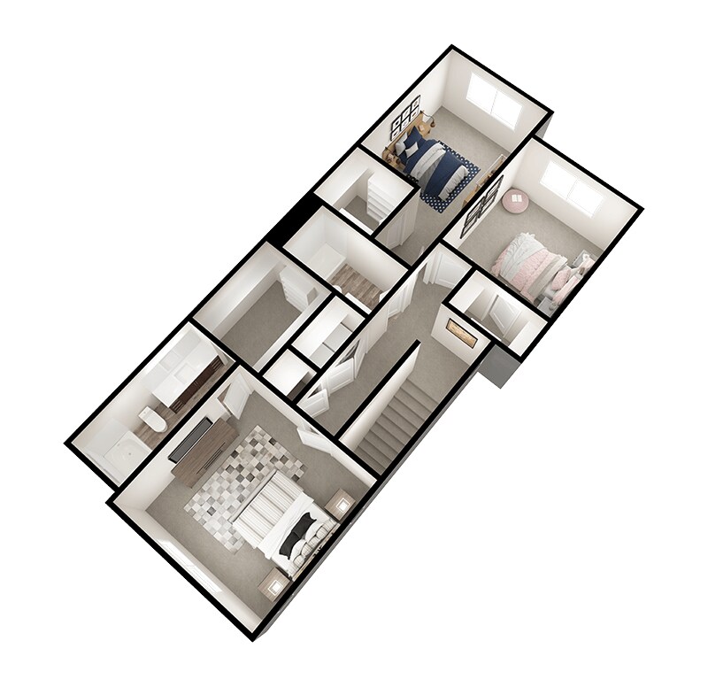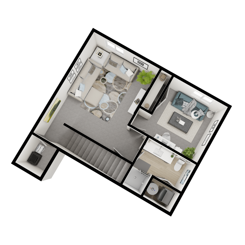 Big Sky 2-Bed w/Unfinished Basement (East) - Plano 2 Los planos de la planta son una interpretación artística. Todas las dimensiones son aproximadas. Los tamaños o el detalle del producto real y sus especificaciones pueden variar. No todas las características están disponibles en todos los hogares para rentar. Los precios y la disponibilidad están sujetos a cambios. El alquiler que se muestra es mensual. Se pueden aplicar ciertos cargos, por ejemplo, entrega de paquetes, recolección de basura, agua, servicios, etc. Depositos varian. Consulta a un representante para conocer detalles.