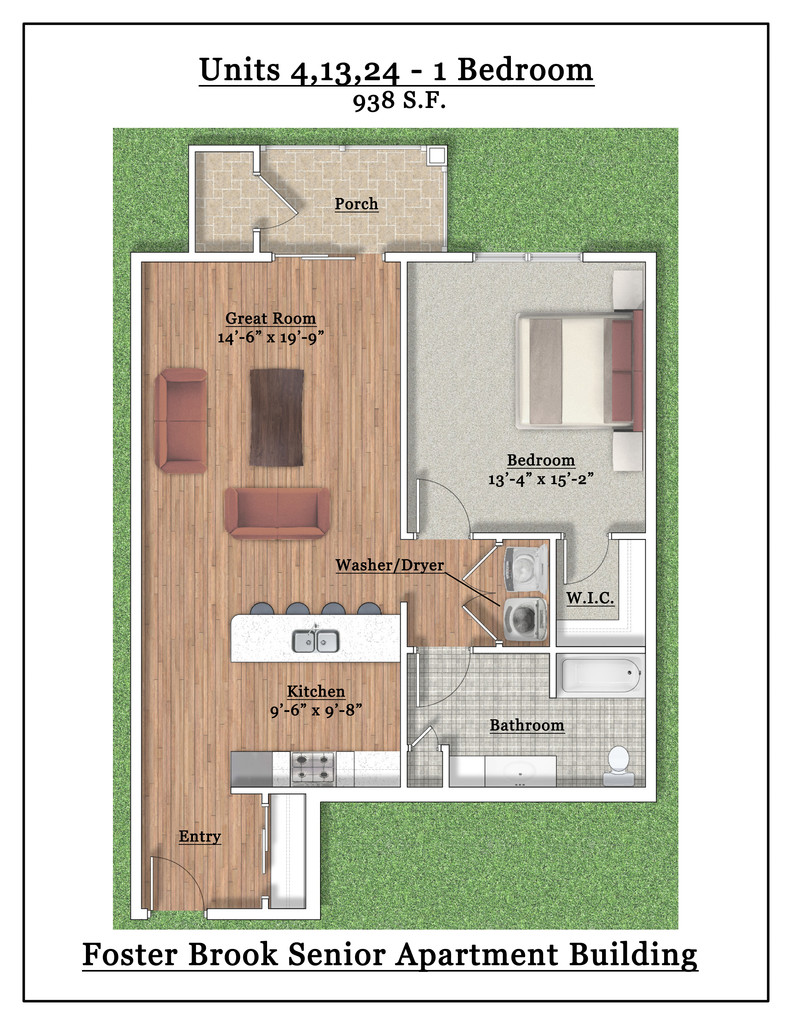 Llámenos hoy para conocer las opciones de precio de 1 dormitorios a 2 dormitorios en Foster Brook Senior Apartments