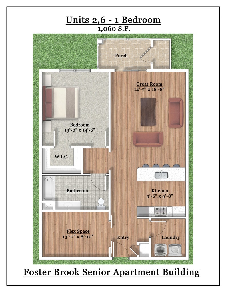 Foster Brook Senior Apartments ofrece apartamentos de 1 a 2 Dormitorios y 742–1,272 pies cuadrados. Aquí está el precio actual y la disponibilidad: