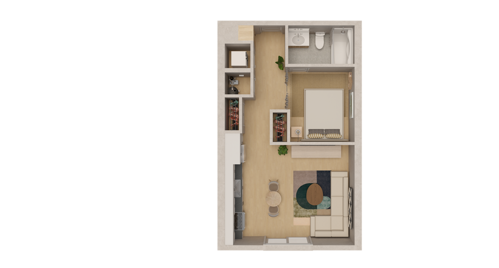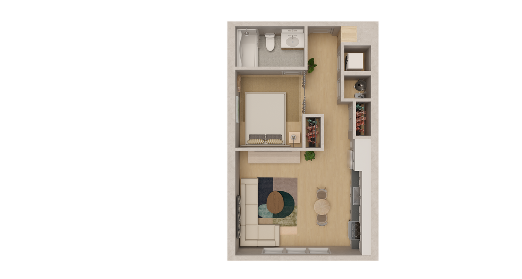 Estudio, 1 Baño, 535 pies²Más CargosDisponible AhoraGalería del Modelo
