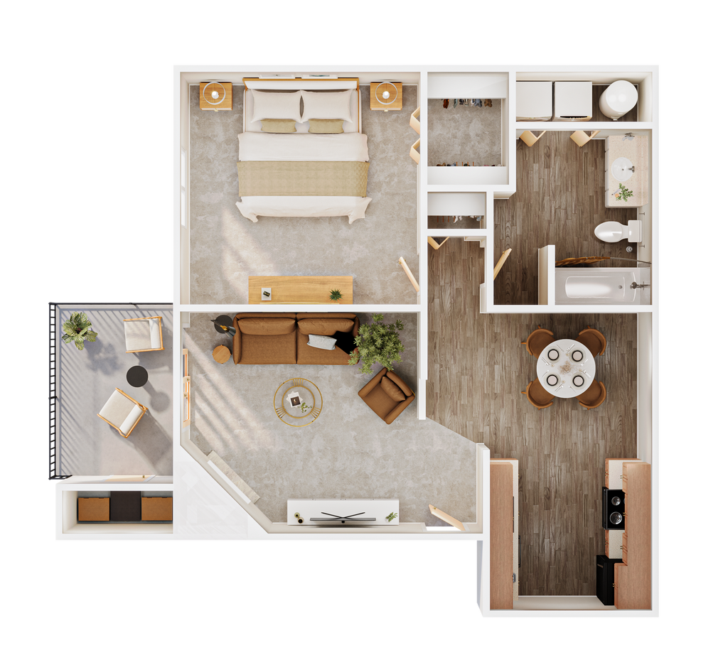 1 Dormitorio, 1 Baño, 680 pies²Disponible AhoraGalería del Modelo