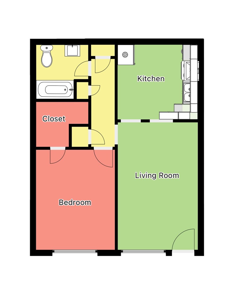 1 Dormitorio, 1 Baño, 550 pies²Disponible AhoraGalería del Modelo