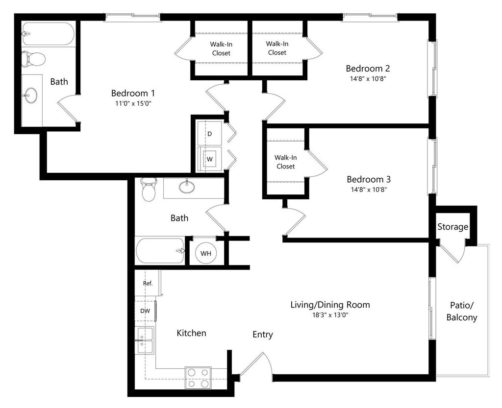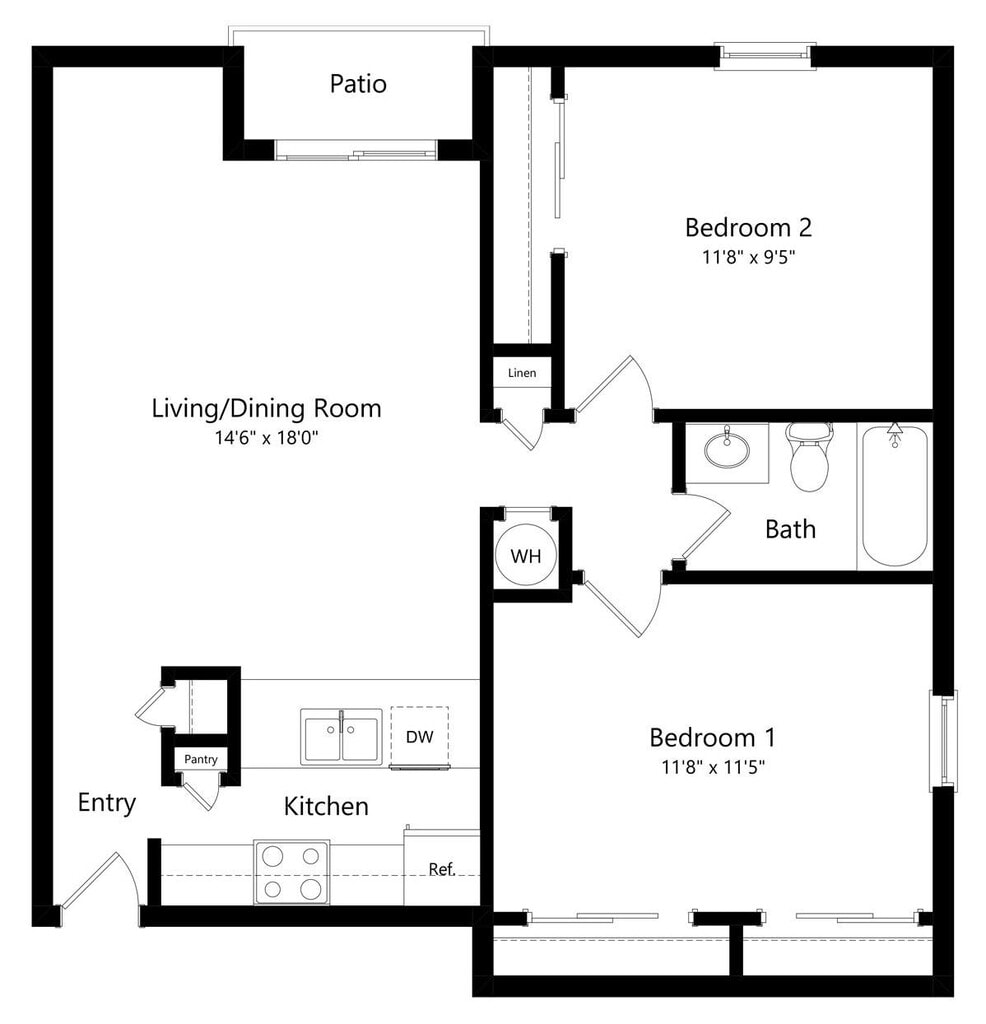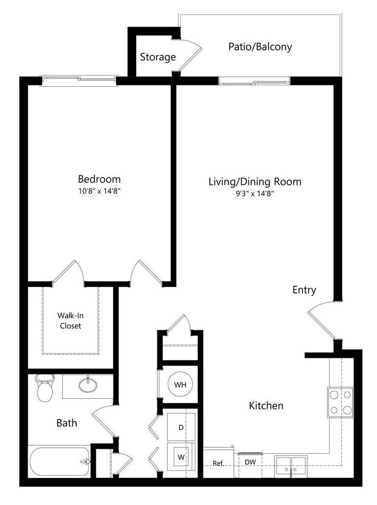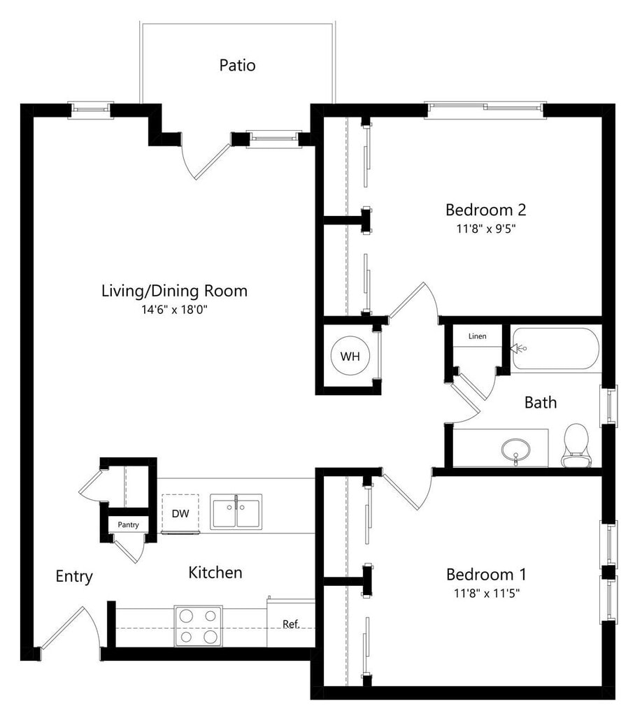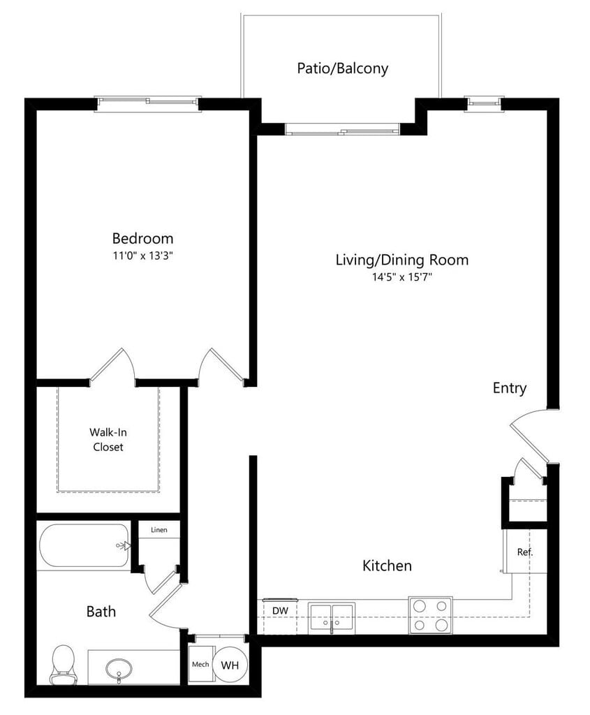 Butler - Plano 1 Unidad de apartamento: 323Modelo de apartamento: Butler$1,001Estudio, 1 Baño, 496 sq ftDisponible AhoraSaline