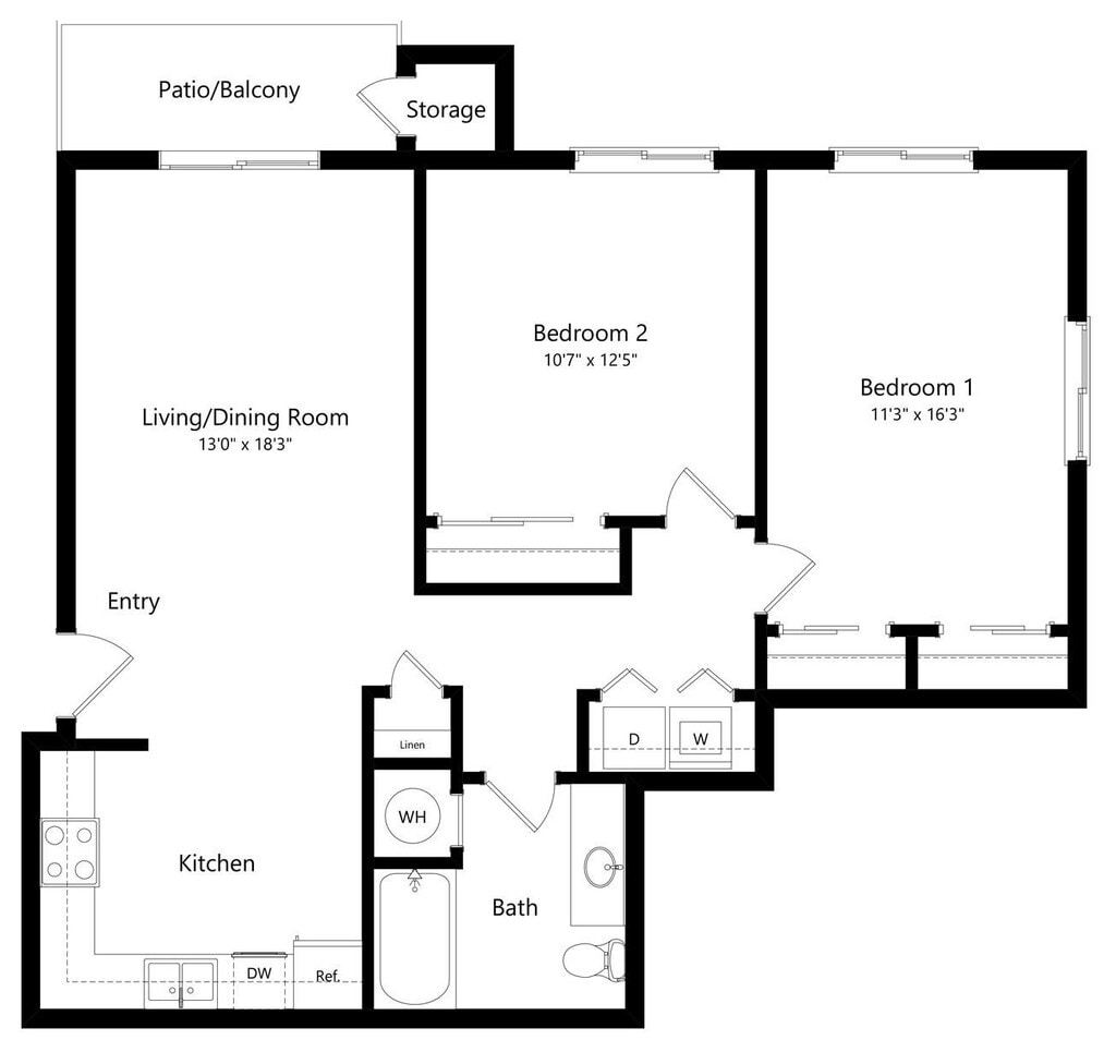 Modelo de apartamento: Butler$1,001Estudio, 1 Baño, 496 sq ftDisponible Ahora![]()