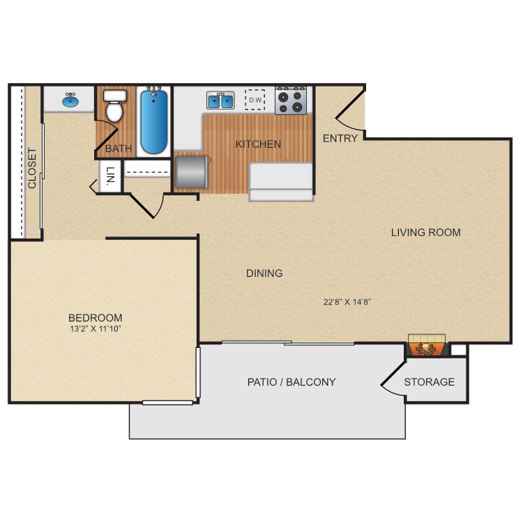 One Bed Plan A - Plano 1 Unidad de apartamento: 5255CModelo de apartamento: One Bed Plan A1 Dormitorio, 1 Baño, 758 sq ftDisponible December 27, 20252 Dormitorios