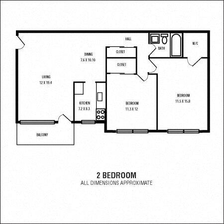 Modelo de apartamento: 2Bedroom 1Bathroom2 Dormitorios, 1 Baño, 910 sq ftDisponible Ahora![]()
