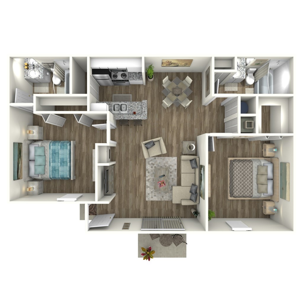 Modelo de apartamento: B3Desde $1,2002 Dormitorios, 2 Baños, 903 sq ftDisponible Ahora![]()