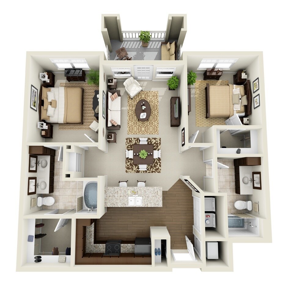 Modelo de apartamento: B2E2 Dormitorios, 2 Baños, 1110 sq ftDisponible Ahora![]()