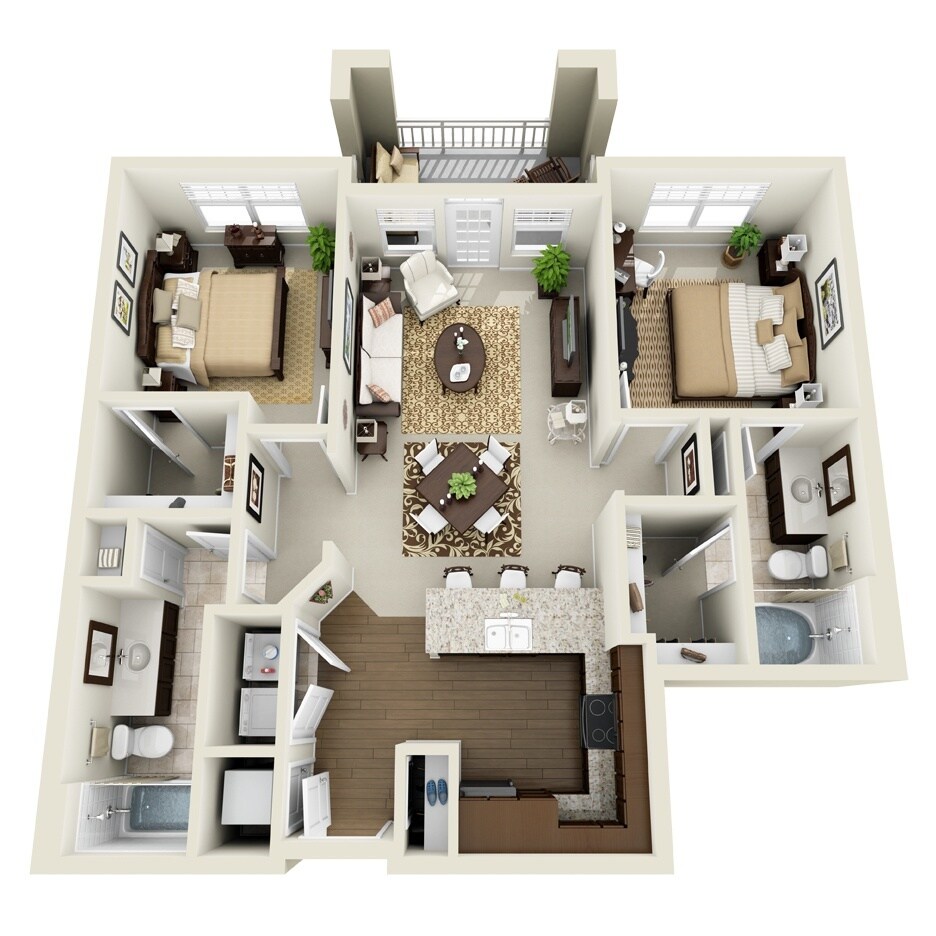 2 Dormitorios, 2 Baños, 1038 pies²Galería del Modelo