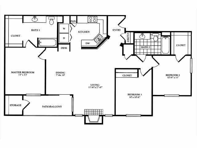 Modelo de apartamento: A1Desde $9991 Dormitorio, 1 Baño, 776 sq ftDisponible Ahora![]()