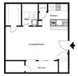 Modelo de apartamento: A1S1 Dormitorio, 1 Baño, 403 sq ftDisponible Ahora![]()