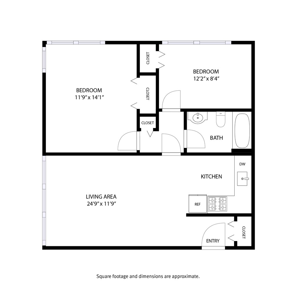 2 Dormitorios, 1 Baño, 770 pies²Disponible AhoraGalería del Modelo
