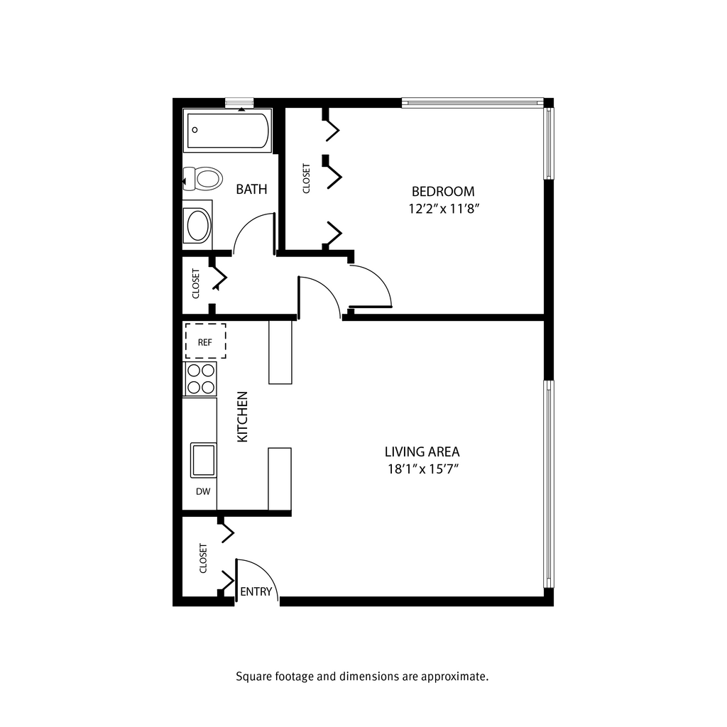 1 Dormitorio, 1 Baño, 571 pies²Disponible AhoraGalería del Modelo