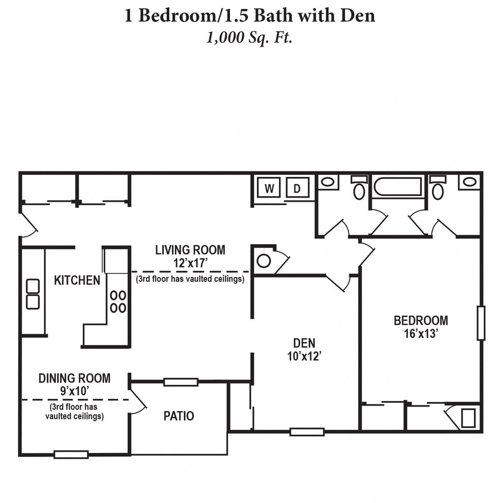 1 Bedroom, 1 Bath - Plano 2 1 Bedroom, 1.5 Bath w/ Den