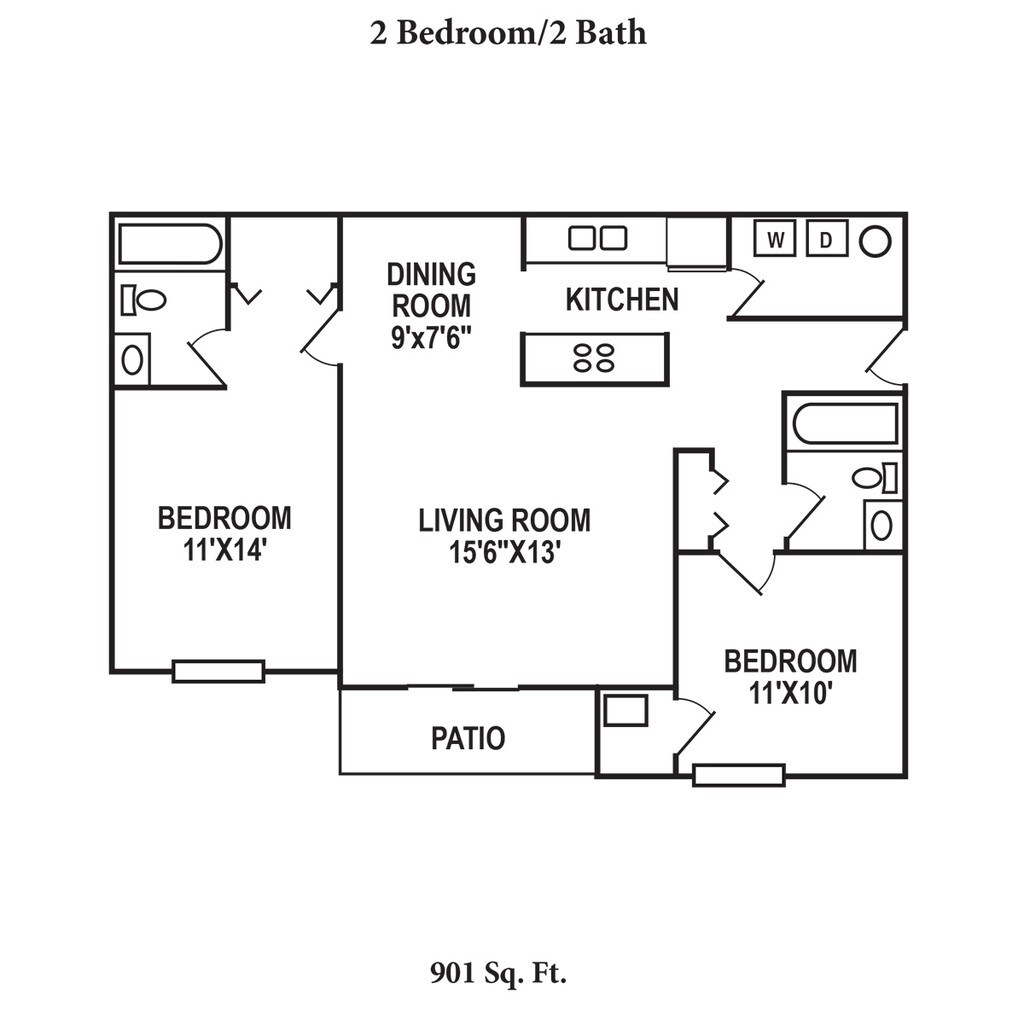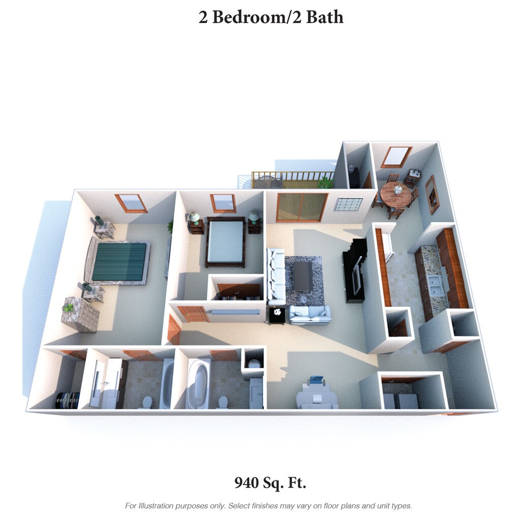 2 Dormitorios, 2 Baños, 901 pies²Galería del Modelo