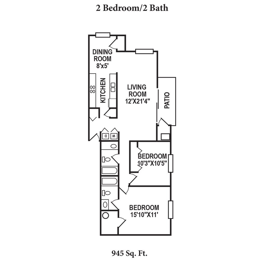 2 Dormitorios, 2 Baños, 945 pies²Galería del Modelo