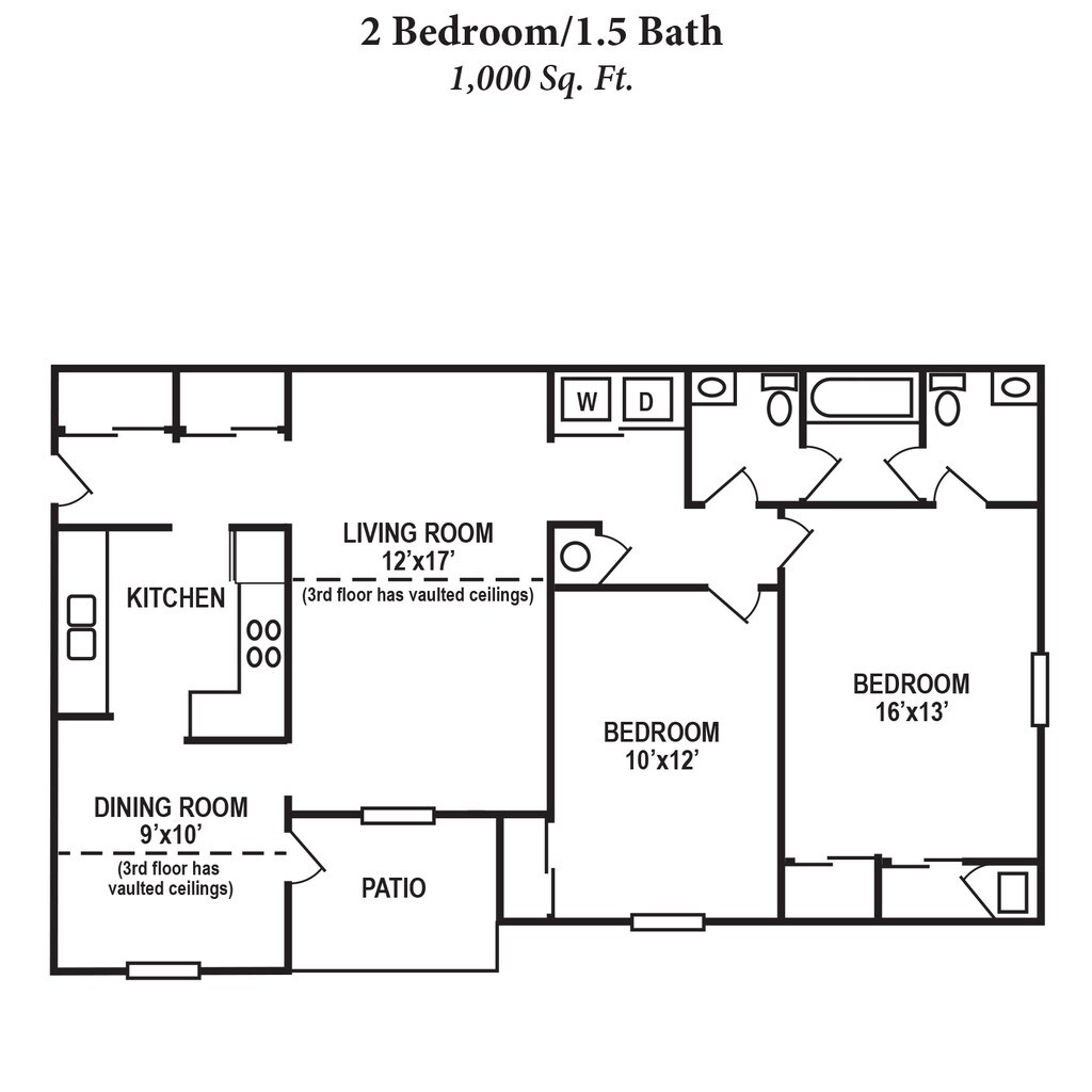 Modelo de apartamento: 2 Bedroom, 1.5 Bath2 Dormitorios, 1.5 Baños, 1000 sq ftDisponible December 19, 2025![]()