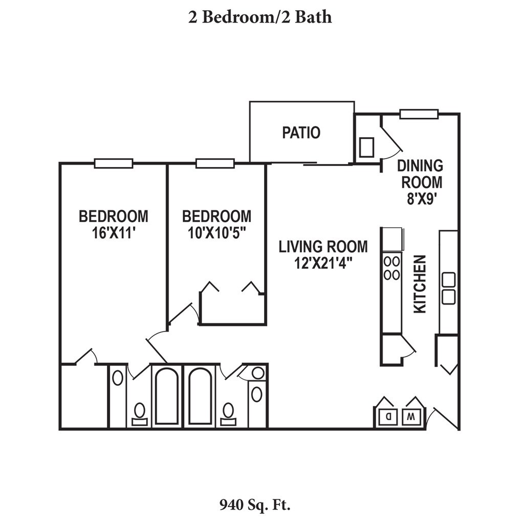 2 Dormitorios, 2 Baños, 940 pies²Galería del Modelo