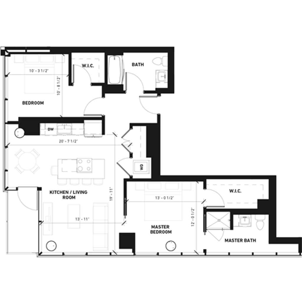 Modelo de apartamento: 2x2B4$4,5262 Dormitorios, 2 Baños, 1123 sq ftDisponible April 4, 2026![]()