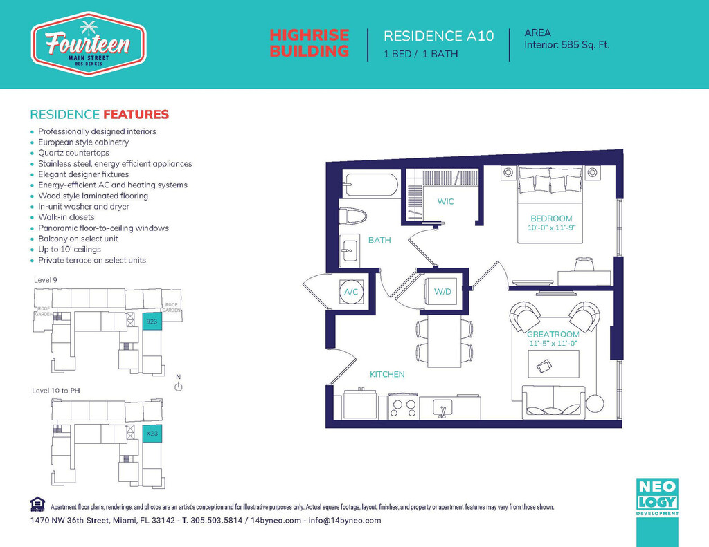 1 Dormitorio, 1 Baño, 585 pies²Disponible AhoraGalería del Modelo