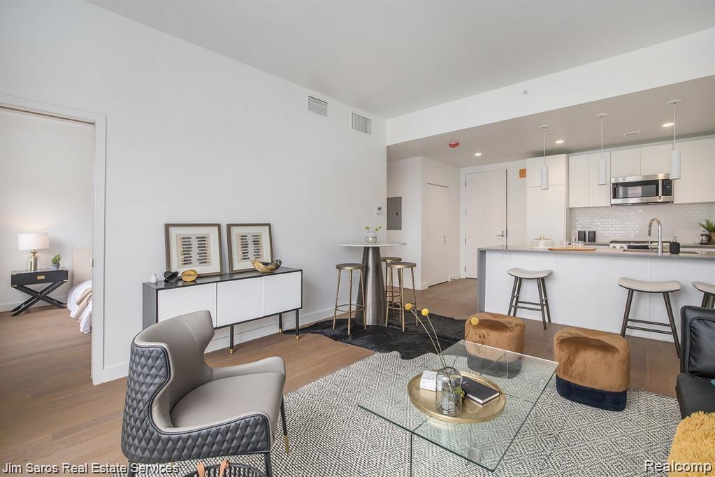 FOURTH & SELDEN ESTÁ LA NUEVA DIRECCIÓN PARA UNA VIDA MODERNA DE DETROIT. ¡Listo para la mudanza! Este apartamento de 1 habitación cuenta con un plano de planta abierto con pisos de tablones de madera, 9 ft. Techos altos y una gran cantidad de ventanas para crear un abundante luz natural. La cocina está exquisitamente decorado con encimeras de cuarzo, gabinetes modernos y lujosos electrodomésticos Bosch con Liebherr empotrado, refrigerador/congelador. Los elegantes baños incluyen inodoros Toto, grifos Grohe, y una ducha independiente. Disfruta de Bosch lavadora/secadora apilables. Las comodidades incluyen: enorme terraza en la azotea, gimnasio y estudio de yoga, sala de estar/sala de conferencias, sala de cuidado de mascotas con estación de ducha, sala de paquetes designadas, Butterfly MX portero virtual, almacenaje de bicicletas y estacionamiento seguro para residentes. Ubicado en el corazón del centro de la ciudad, cerca de todo.