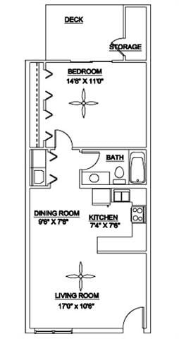 1 Dormitorio, 1 Baño, 650 pies²Disponible AhoraGalería del Modelo
