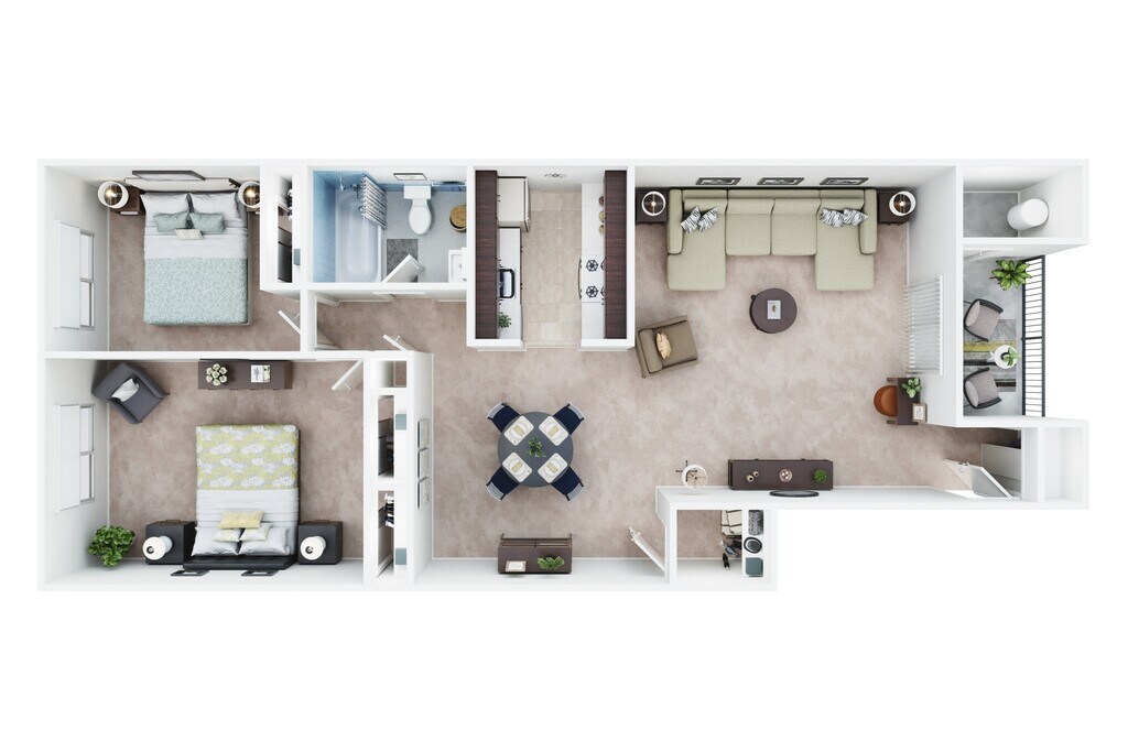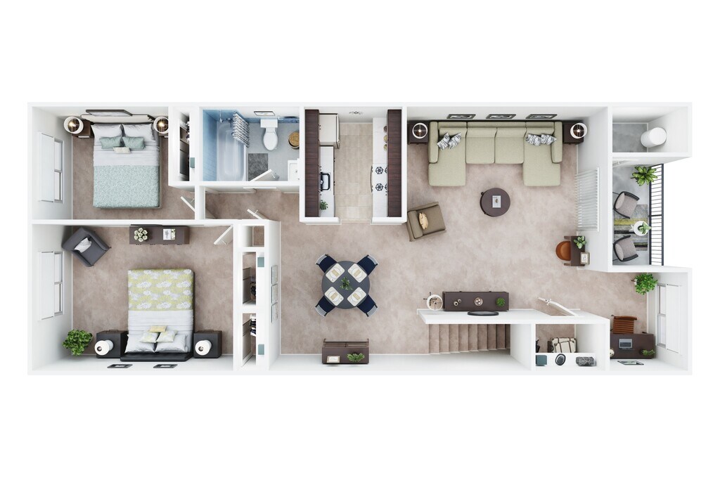 2 Dormitorios, 1 Baño, 950-960 pies²Disponible AhoraGalería del Modelo