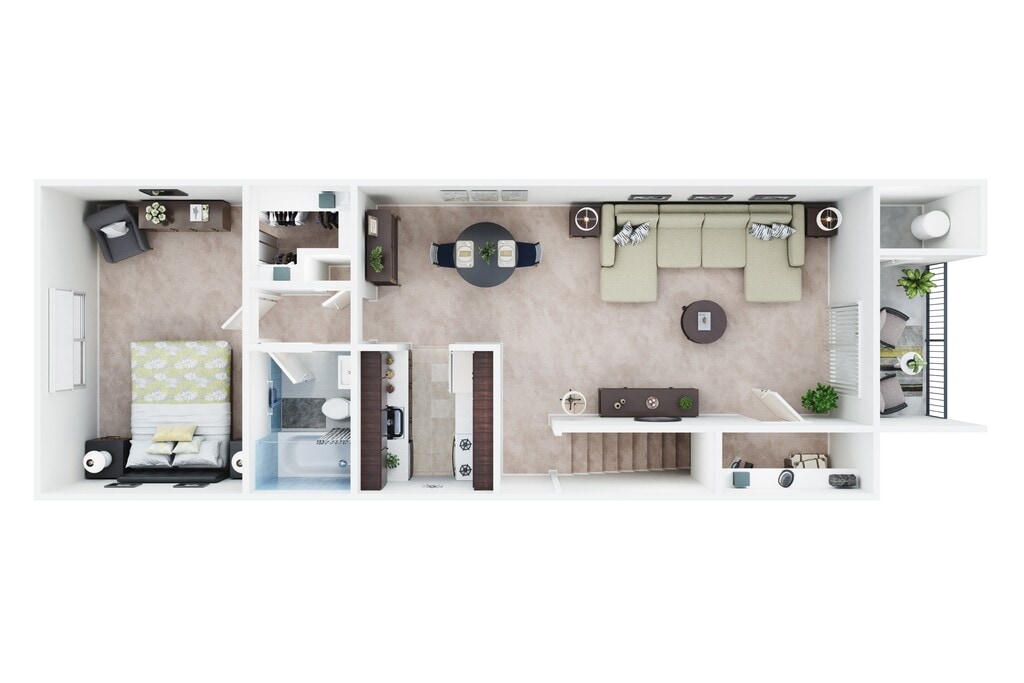 1 Dormitorio, 1 Baño, 600 pies²Disponible AhoraGalería del Modelo