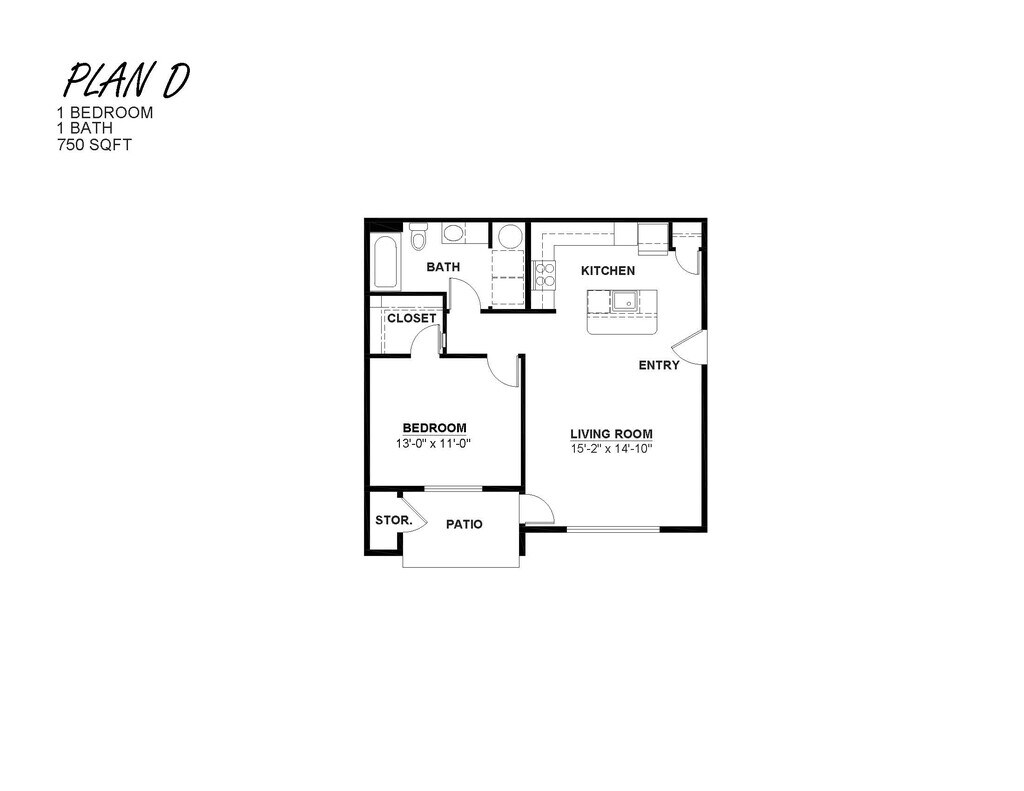 1 Dormitorio, 1 Baño, 750 pies²Disponible AhoraGalería del Modelo