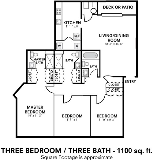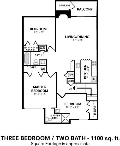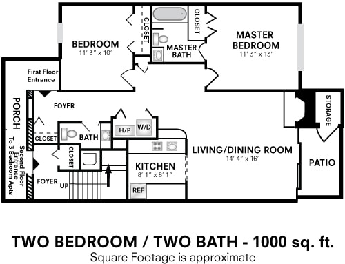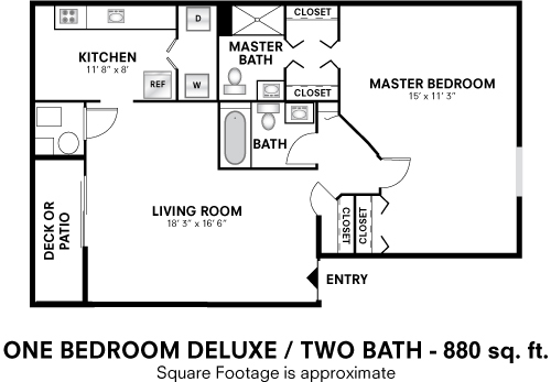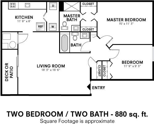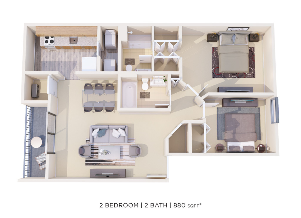 Two Bedroom 2 Bath - 880 sqft