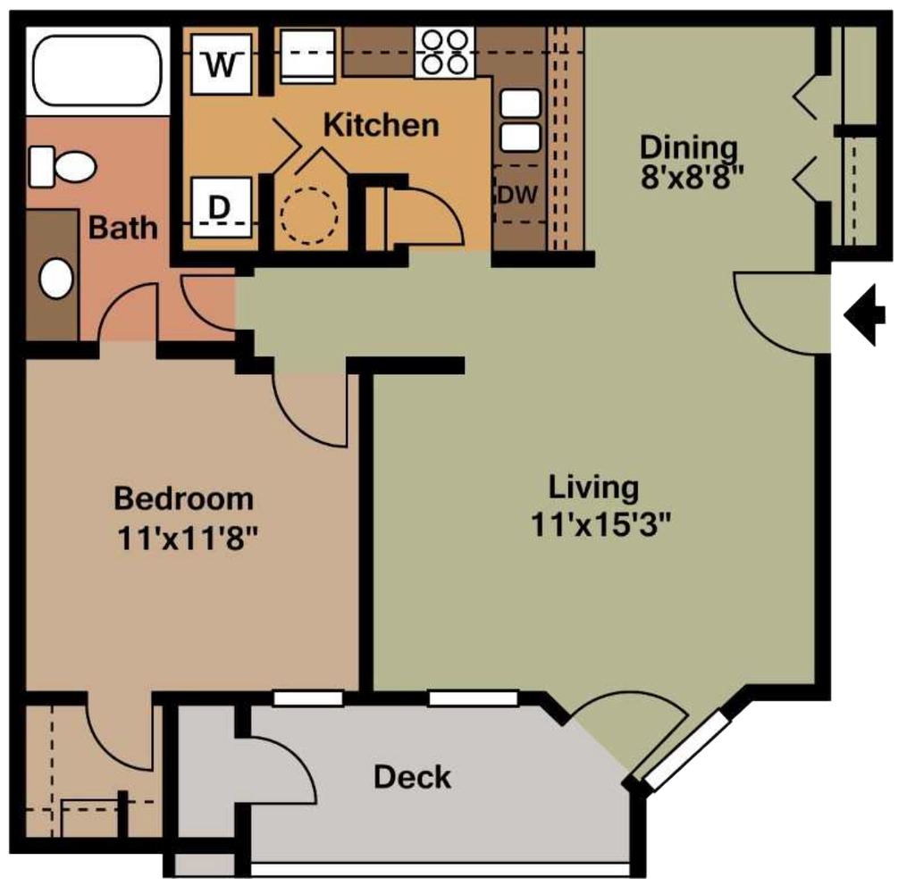 Modelo de apartamento: A1$1,0401 Dormitorio, 1 Baño, 730 sq ftDisponible AhoraPlanosFotos![]()