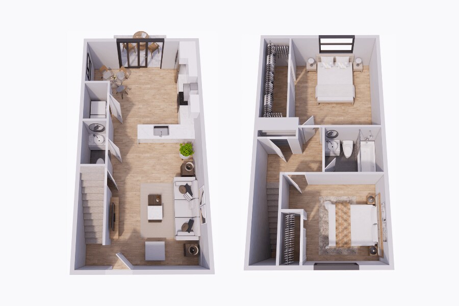 2 Dormitorios, 1 Baño, 1000 pies²Galería del Modelo