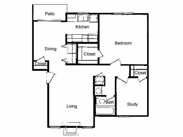 1 Dormitorio, 1 Baño, 812 pies²El más grandeEsta opción tiene las unidades más grandes para este modeloGalería del Modelo
