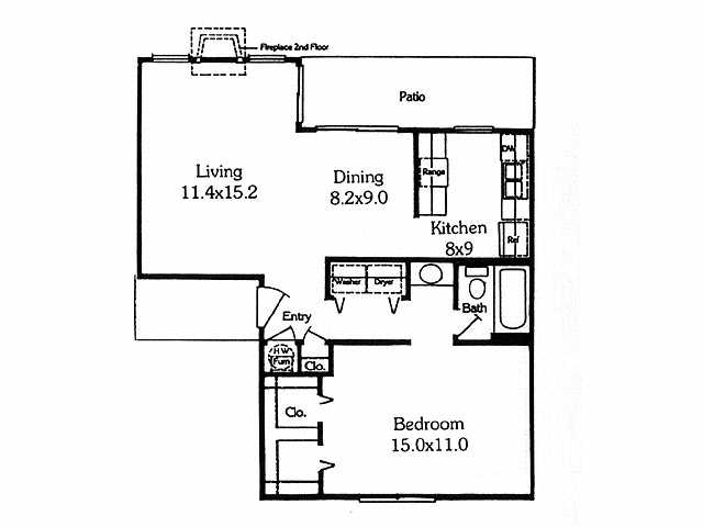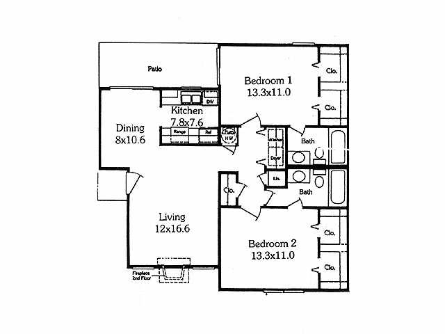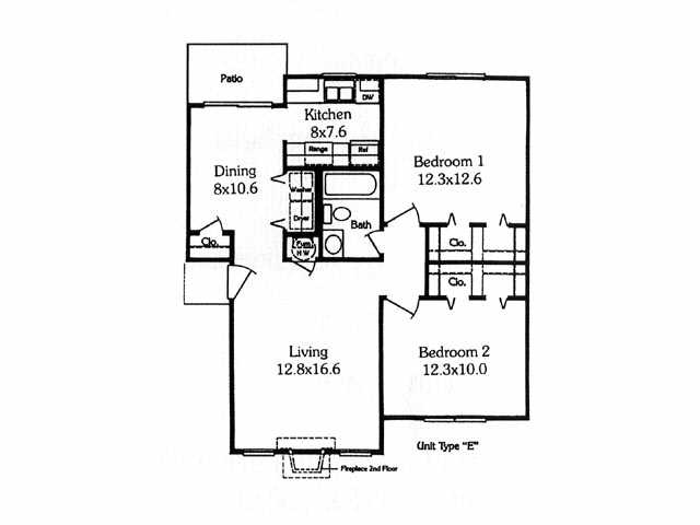 Modelo de apartamento: E2 Dormitorios, 1 Baño, 863 sq ftNo Disponible![]()