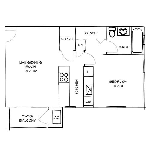 Modelo de apartamento: The LeeDesde $1,6341 Dormitorio, 1 Baño, 580 sq ftDisponible Ahora![]()