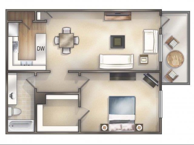 1 Dormitorio, 1 Baño, 780 pies²Disponible AhoraGalería del Modelo