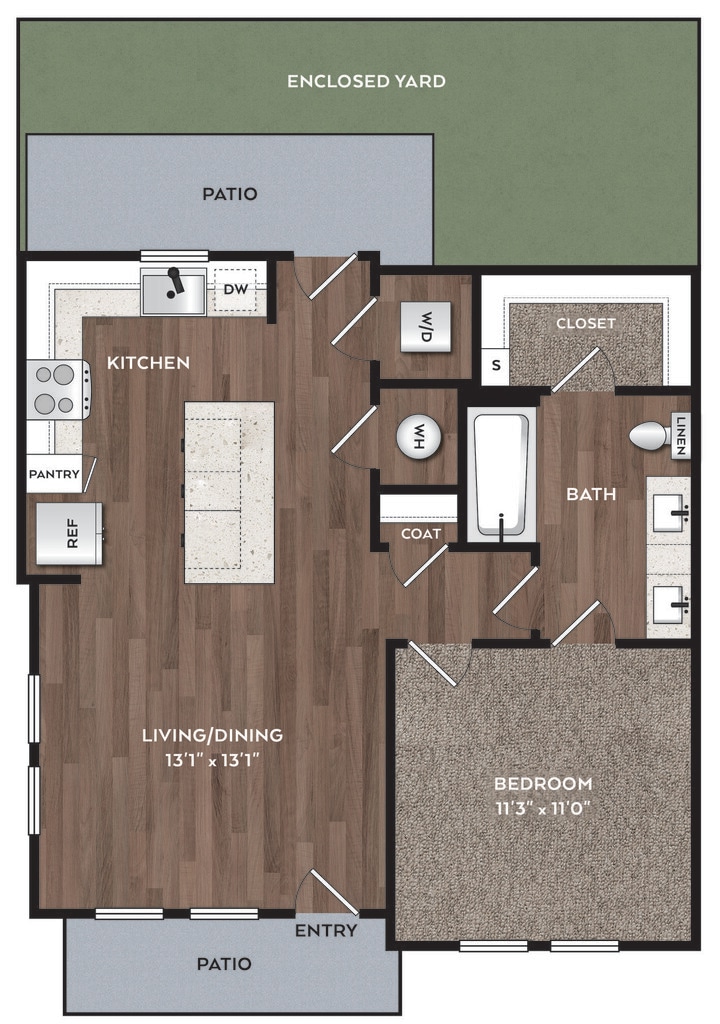 Modelo de apartamento: A11 Dormitorio, 1 Baño, 659 sq ftDisponible Ahora![]()
