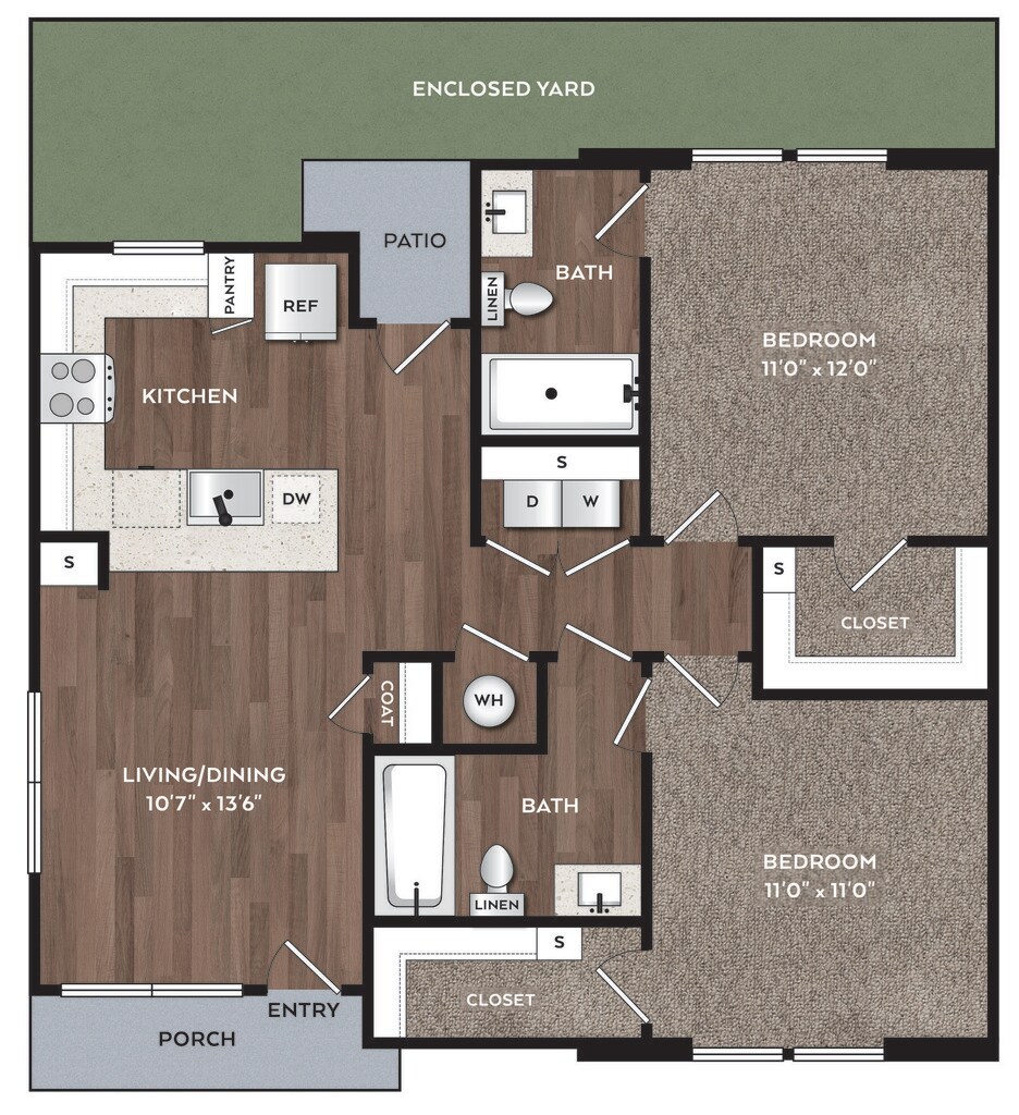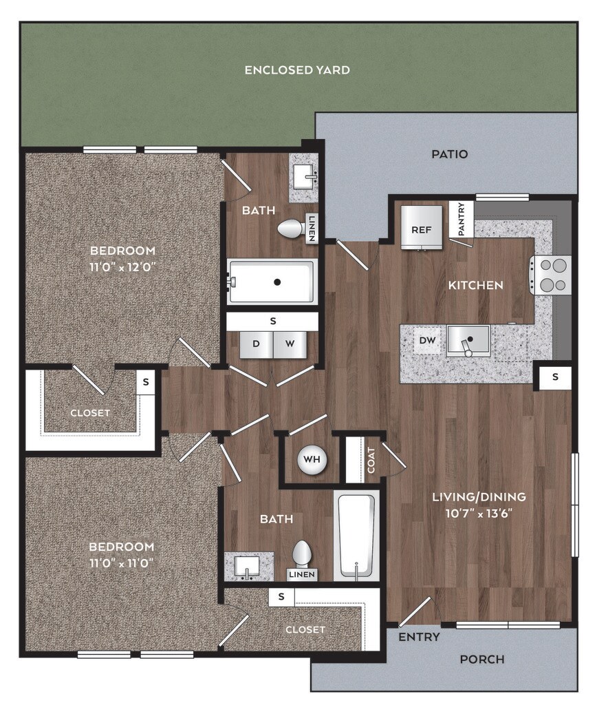 2 Dormitorios, 2 Baños, 879 pies²Disponible AhoraEl más grandeEsta opción tiene las unidades más grandes para este modeloGalería del Modelo