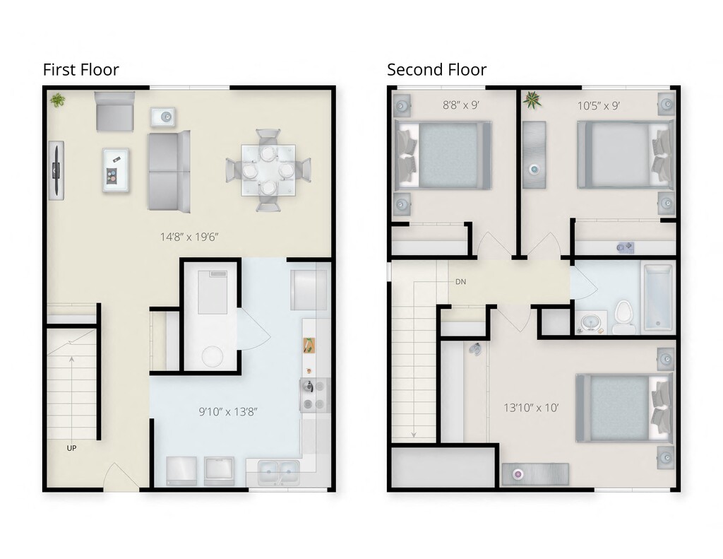 Modelo de apartamento: Three Bedroom TownhomeDesde $1,4253 Dormitorios, 1 Baño, 974 sq ftDisponible Ahora![]()