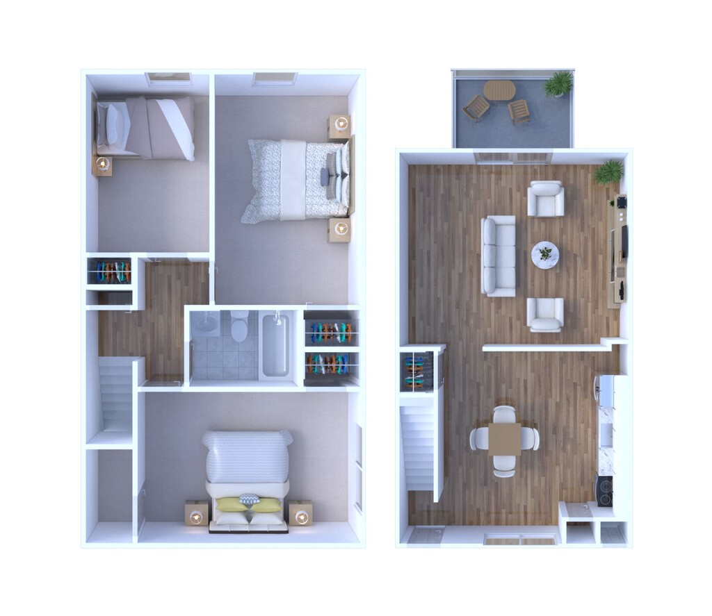 Modelo de apartamento: 2 Bed 1 Bath Townhome | Classic2 Dormitorios, 1 Baño, 747 sq ftNo Disponible![]()