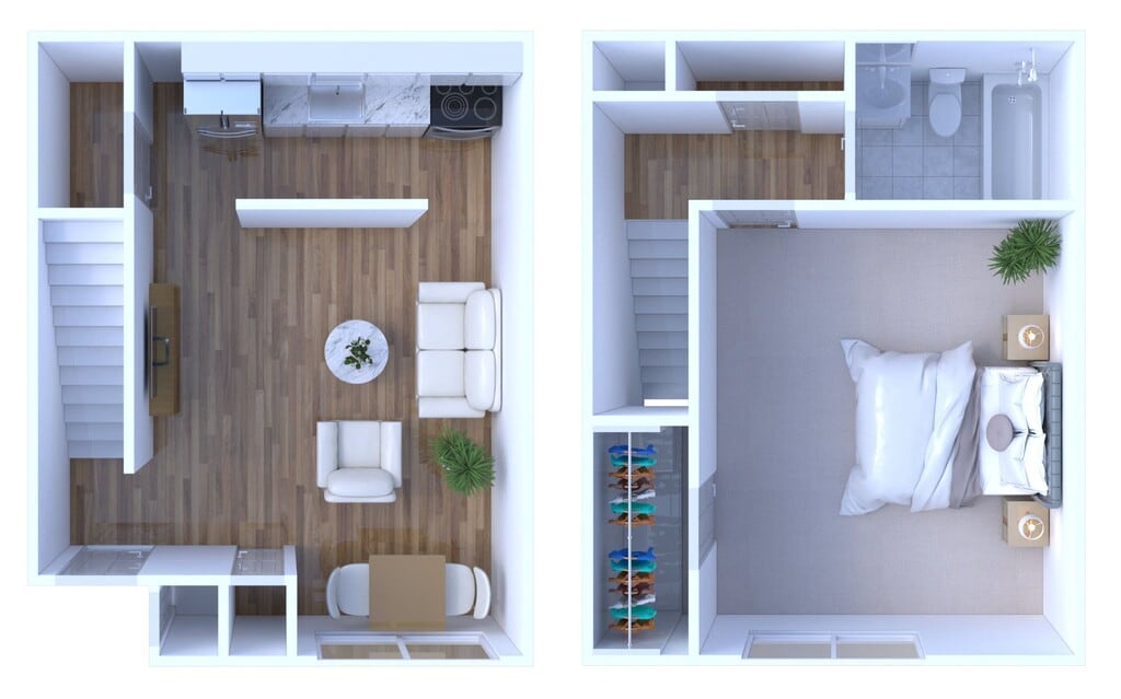 1 Bed 1 Bath Townhome | Classic - Plano 1 1 Bed 1 Bath Townhome | Renovated