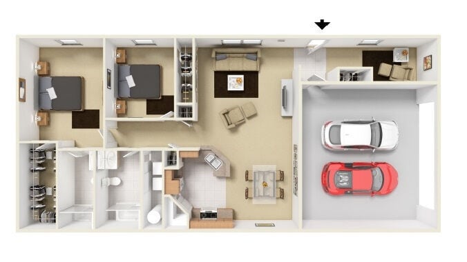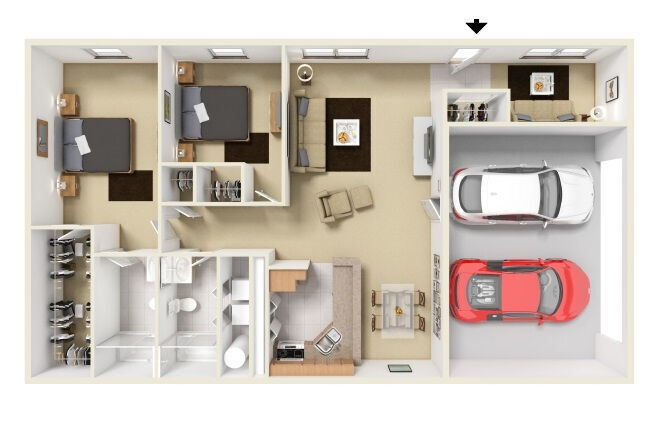 2 Dormitorios, 2 Baños, 1150 pies²Galería del Modelo
