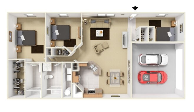 Max of 1. Every apartment comes with its own remote controlled access one or two car garage. Every home has an attached direct entry garage except the Arlington plan comes with a detached garage.