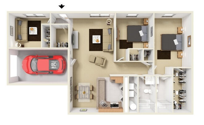 Modelo de apartamento: The Bennington II$1,9752 Dormitorios, 2 Baños, 1035 sq ftDisponible July 1, 2026Planos3D Tours![]()