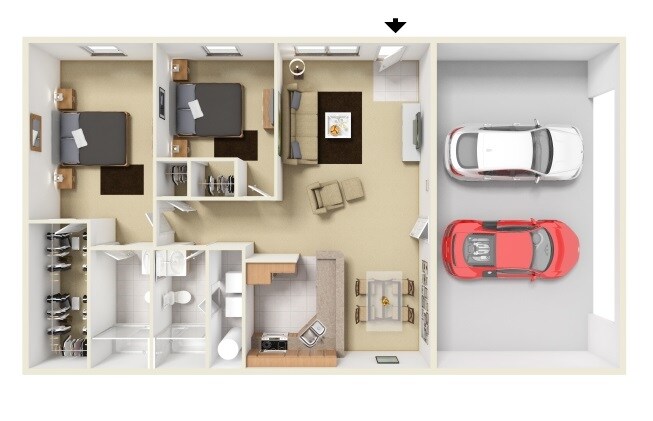 2 Dormitorios, 2 Baños, 1222 pies²El más grandeEsta opción tiene las unidades más grandes para este modeloGalería del Modelo