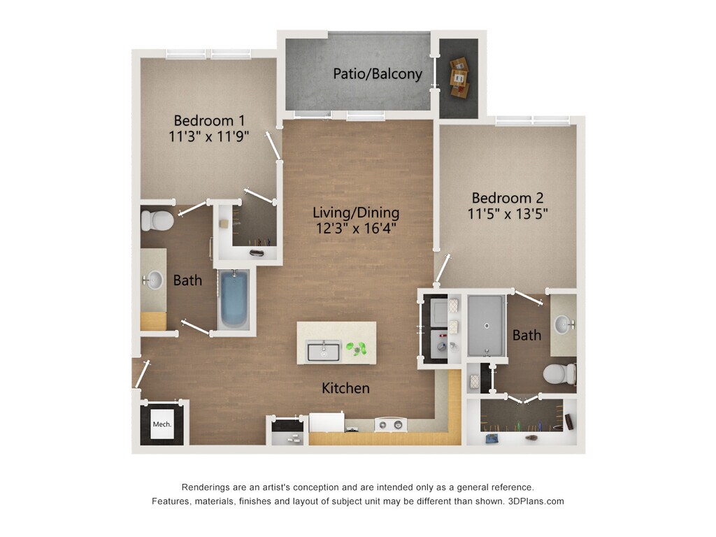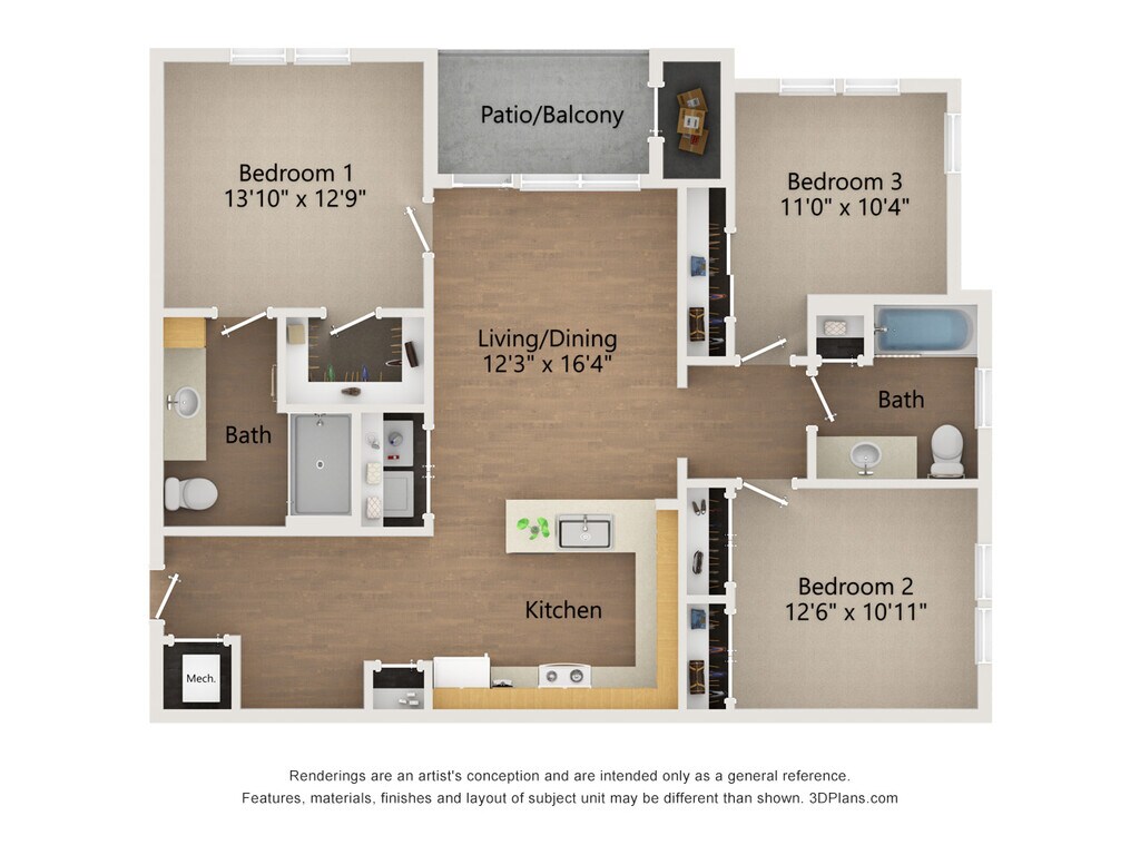 3 Dormitorios, 2 Baños, 1275 pies²Galería del Modelo