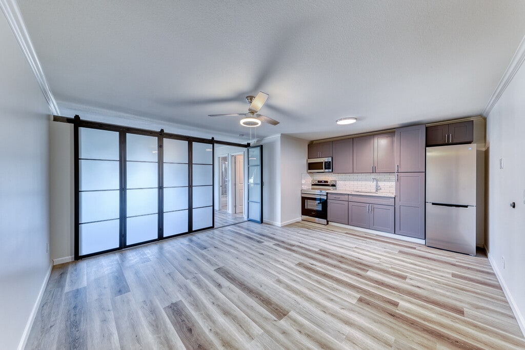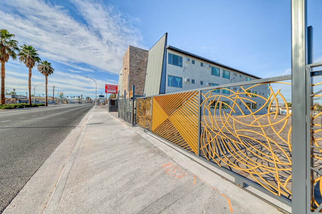 Ubicado en el corazón del centro de Las Vegas, Fremont Manor cuenta con amplios apartamentos estilo loft de una habitación con acabados modernos de primera línea. Los apartamentos tienen paredes divisorias de vidrio que permiten a los inquilinos pasar sus apartamentos de un diseño de 1 habitación a un plano de planta abierto. También tienen vestidores, cocinas completas, puertas de vidrio en la ducha y espejos de baño habilitados para Bluetooth. La propiedad cuenta con entradas automáticas en todo el lugar, un elevador, lavandería, vigilancia de seguridad las 24 horas, y es completamente privada. Los inquilinos disfrutan de estar a una poca distancia a pie de la escena del centro de la ciudad y a una poca distancia en auto de la bulliciosa Arts & Brewery Districts.