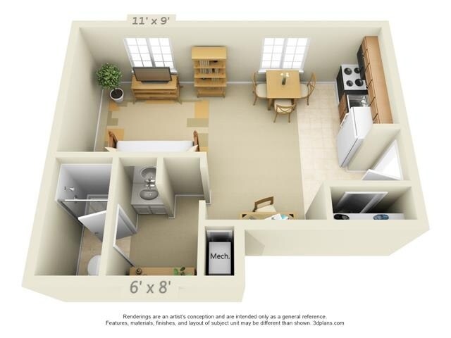 Estudio, 1 Baño, 450-550 pies²Galería del Modelo